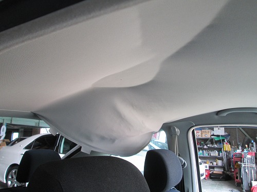 フォルクスワーゲン・ニュービートルの垂れた天井を張り替え