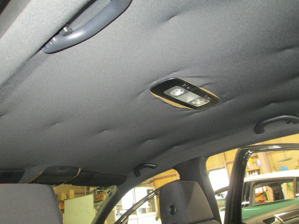 欧州車に多く見られる天井の生地の垂れや剥がれは、純正品に交換となるとかなり高額となります。