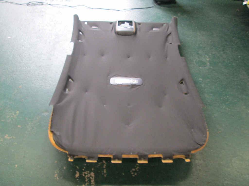現在の天井生地とウレタンを剥がし、乾燥させて新しい天井生地を張ります。生地は類似色の天井専用生地使用。