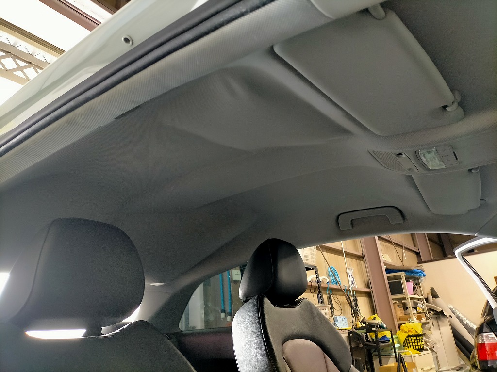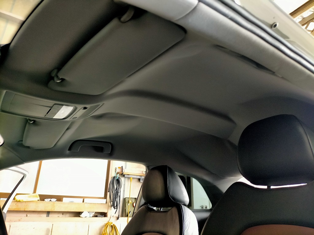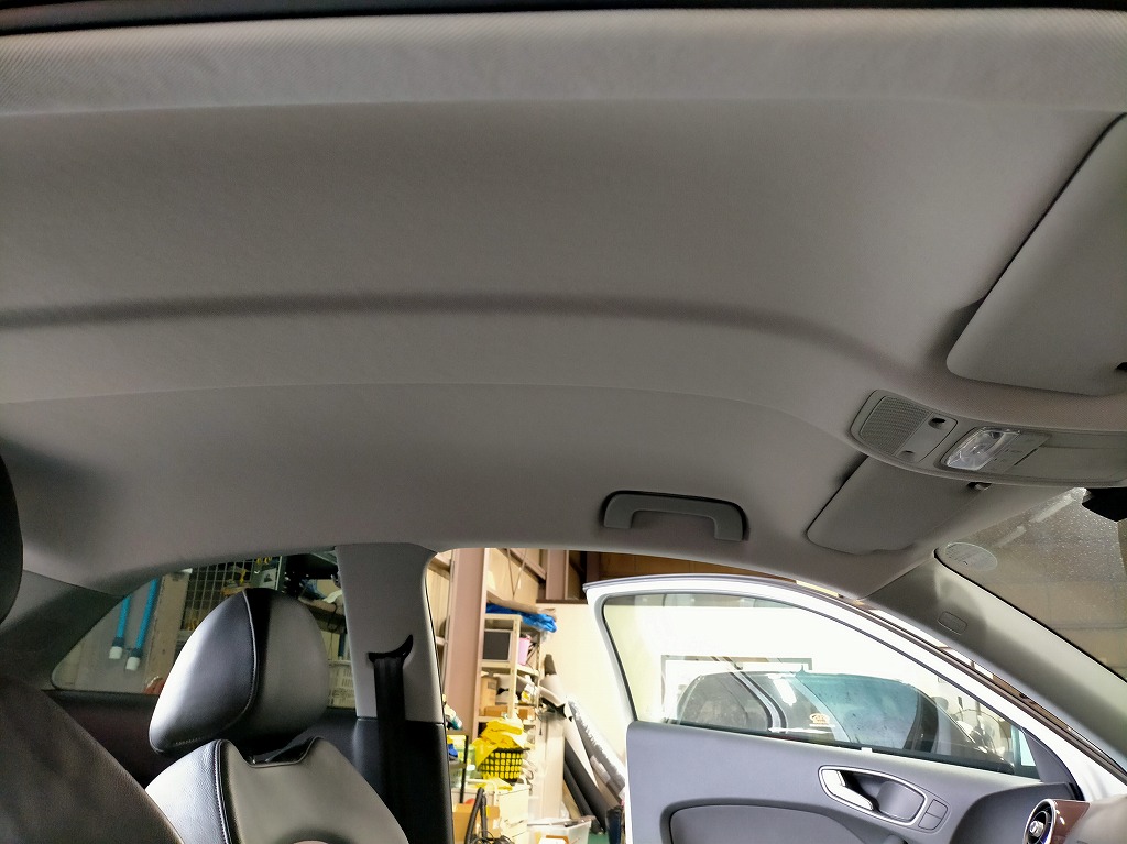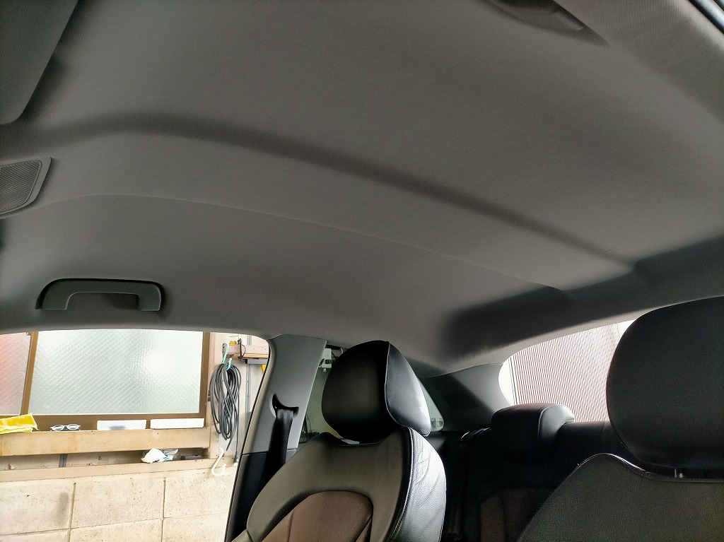 欧州車に多く見られる天井の生地の垂れや剥がれは、純正品に交換となるとかなり高額となります。