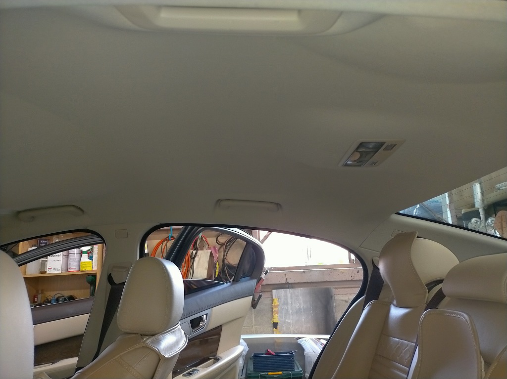 ジャガー XF 剥がれて垂れた天井の張り替えと防音断熱材の追加| 愛知県刈谷市 T様のお車の内装修理・補修