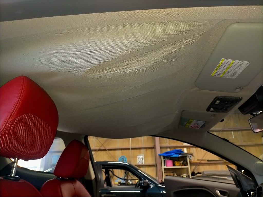 欧州車に多く見られる天井の生地の垂れや剥がれは、純正品に交換となるとかなり高額となります。