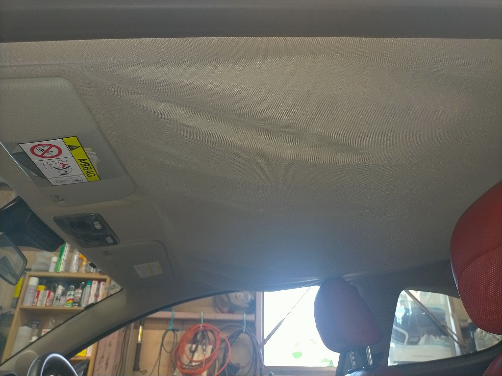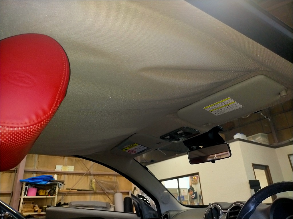 前方(サンバイザー周辺)や後方(リアシート上部)も均一に浮きが見られ、部分的ではなく天井全体に広がっています😅