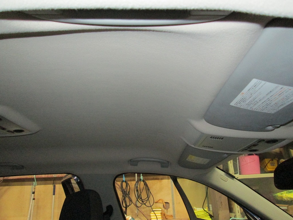 今回の車両も典型的な症状で、補修ではなく 天井ライナーを取り外して全面張り替える方法 が最も適切です。