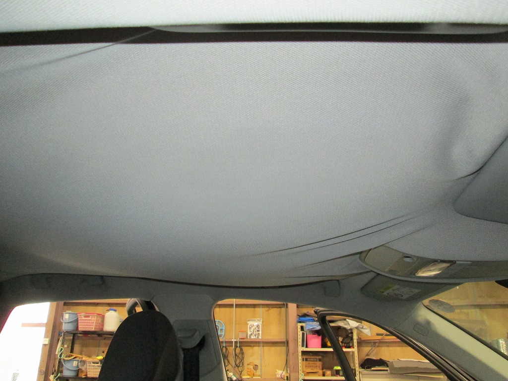 ルームランプ周辺やピラー付近など、本来テンションがかかる部分でも生地が支えられていません…。