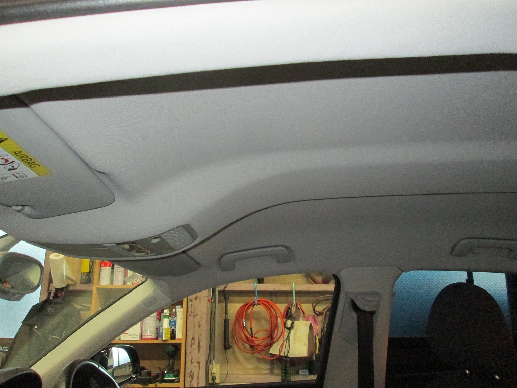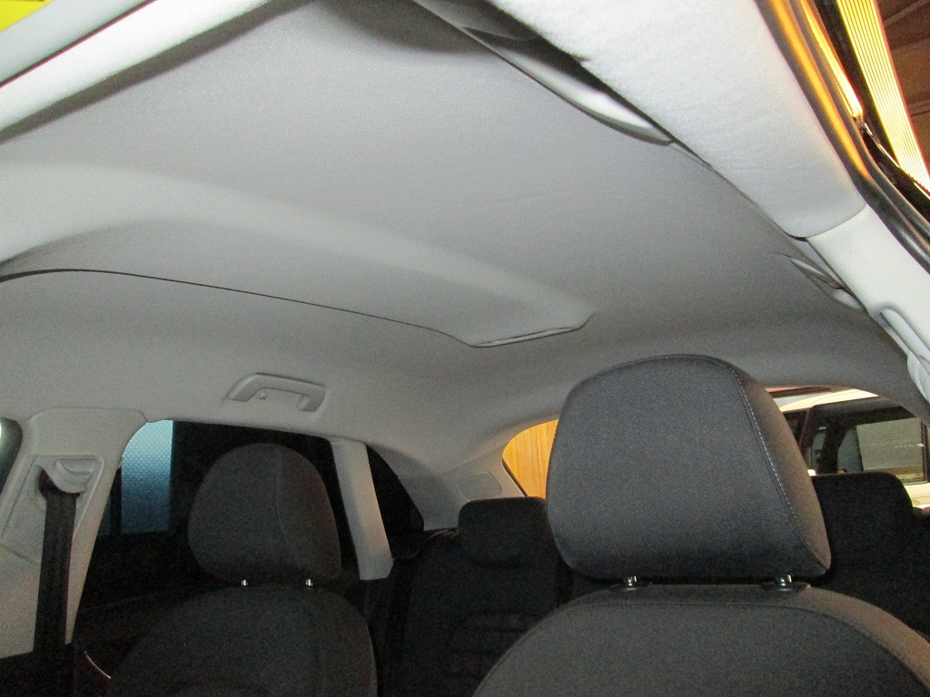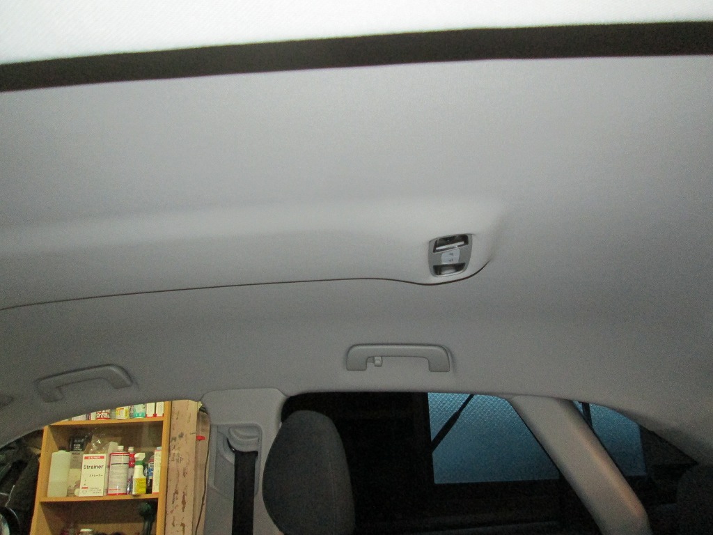 新しい天井生地に張り替えたことで車内全体がワントーン明るく感じられ、清潔感と上質感が向上しています。