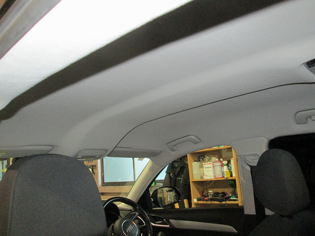 アウディ Q3 TSI 剥がれて垂れた天井の張り替え| 愛知県小牧市 Y様のお車の内装修理・補修