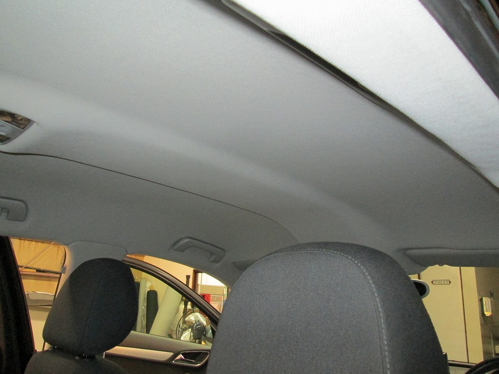 欧州車に多く見られる天井の生地の垂れや剥がれは、純正品に交換となるとかなり高額となります。