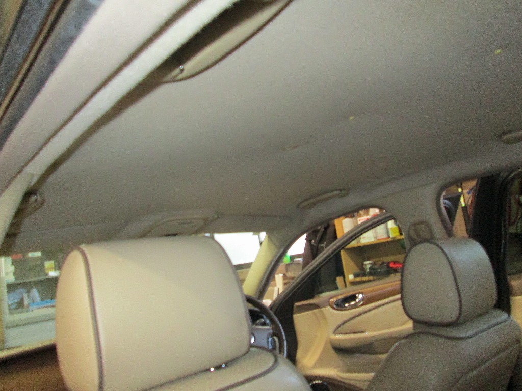 ジャガー・XJ 剥がれて垂れた天井の張り替えと防音断熱材の追加|愛知県蒲郡市 M様のお車の内装修理・補修