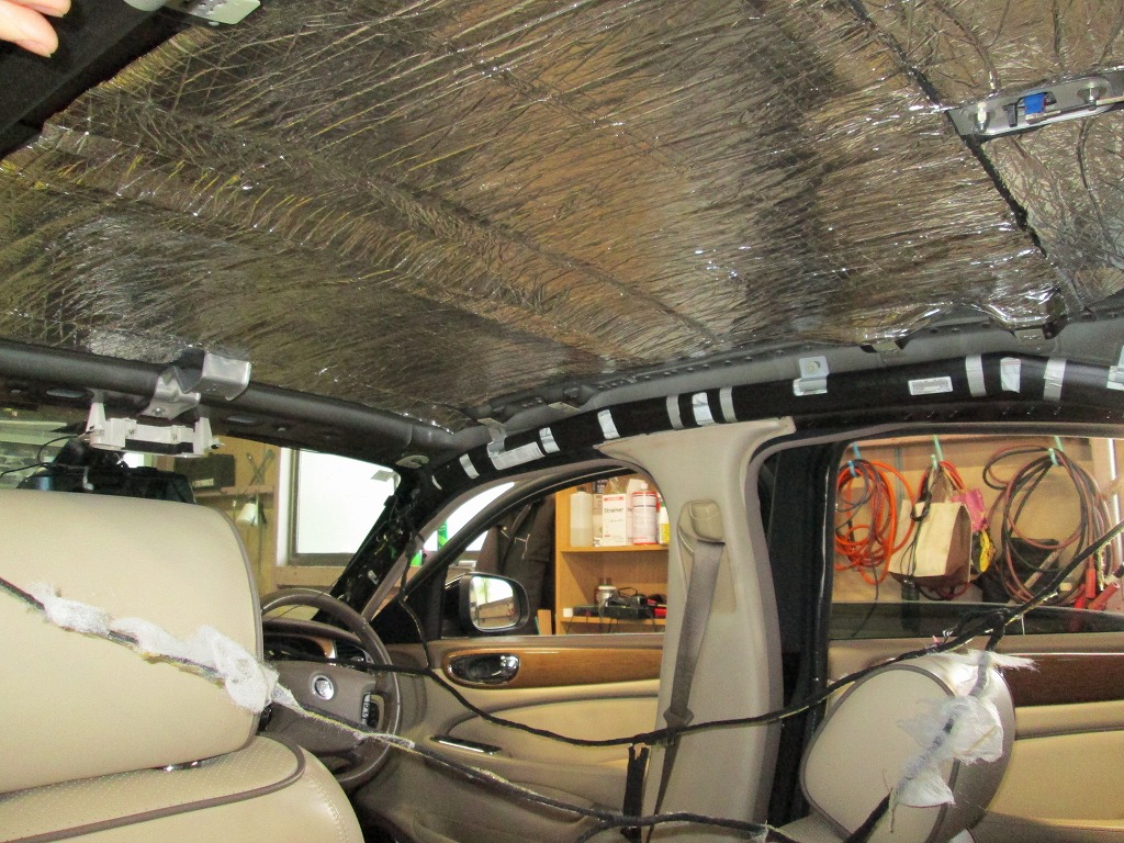 /カテゴリ: ジャガー, XJ, 施工事例, 天井張り替え, 断熱の天井張り替え /作成者: KAJIジャガー・XJ 剥がれて垂れた天井の張り替えと防音断熱材の追加