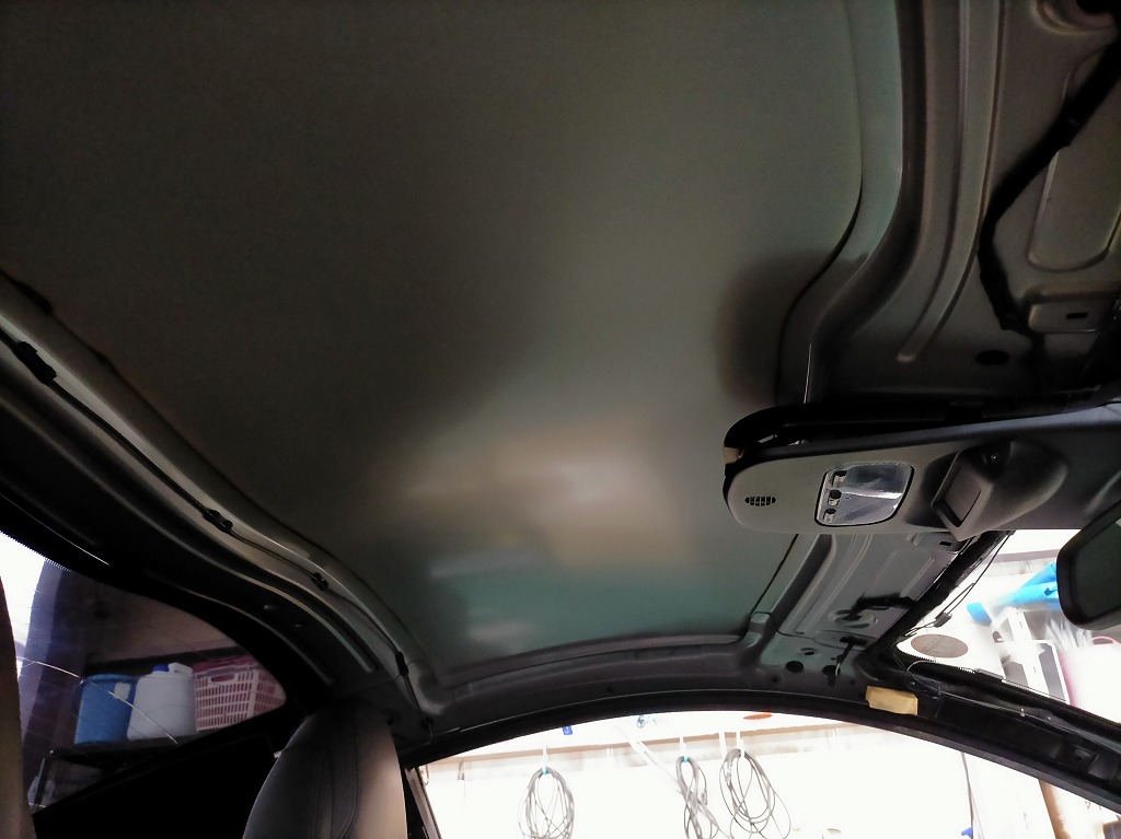 プジョー RCZ 剥がれて垂れた天井の張り替えと防音断熱材の追加