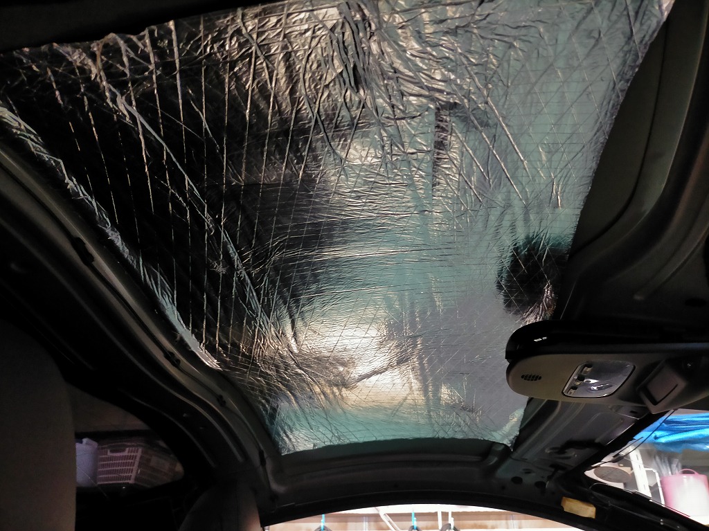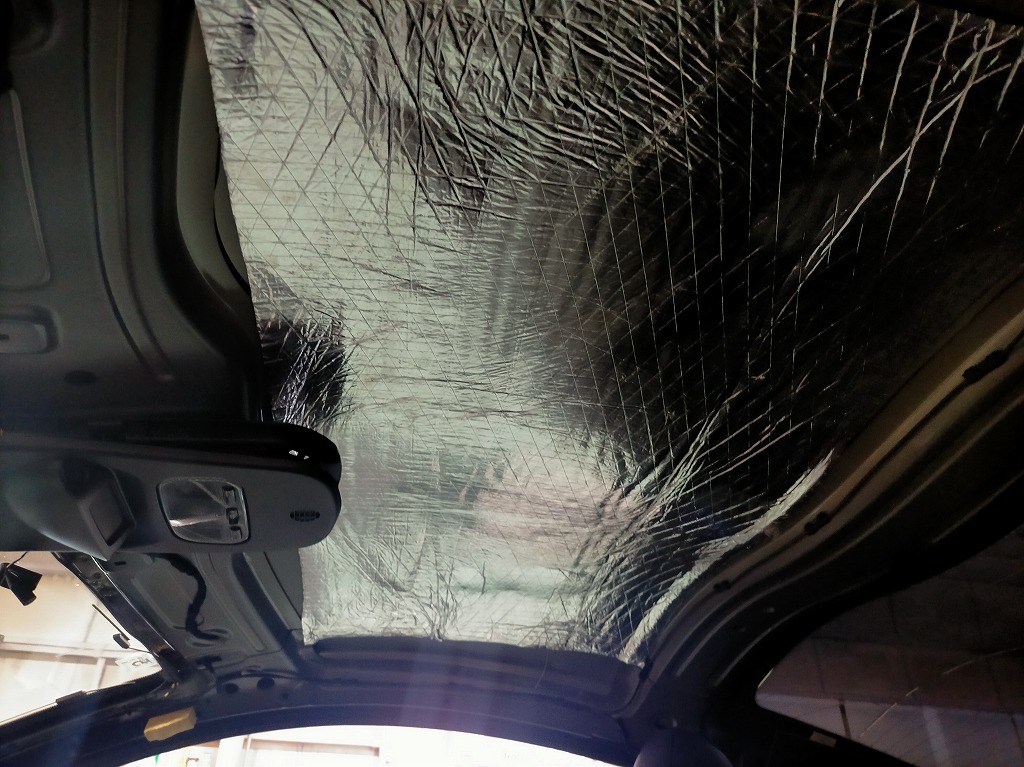 KAJIでは車の天井張り替えするのに伴い、併せて全体に断熱・遮熱シートを張り込んだ施工を推奨しております。