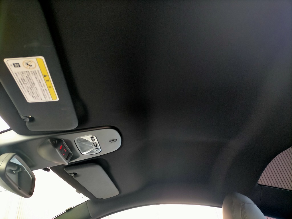 立体的な天井形状でも生地の浮きはなく、内装全体との一体感が回復👍