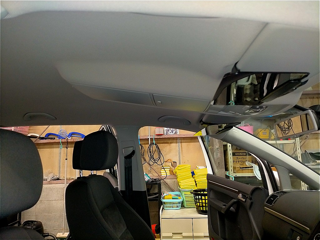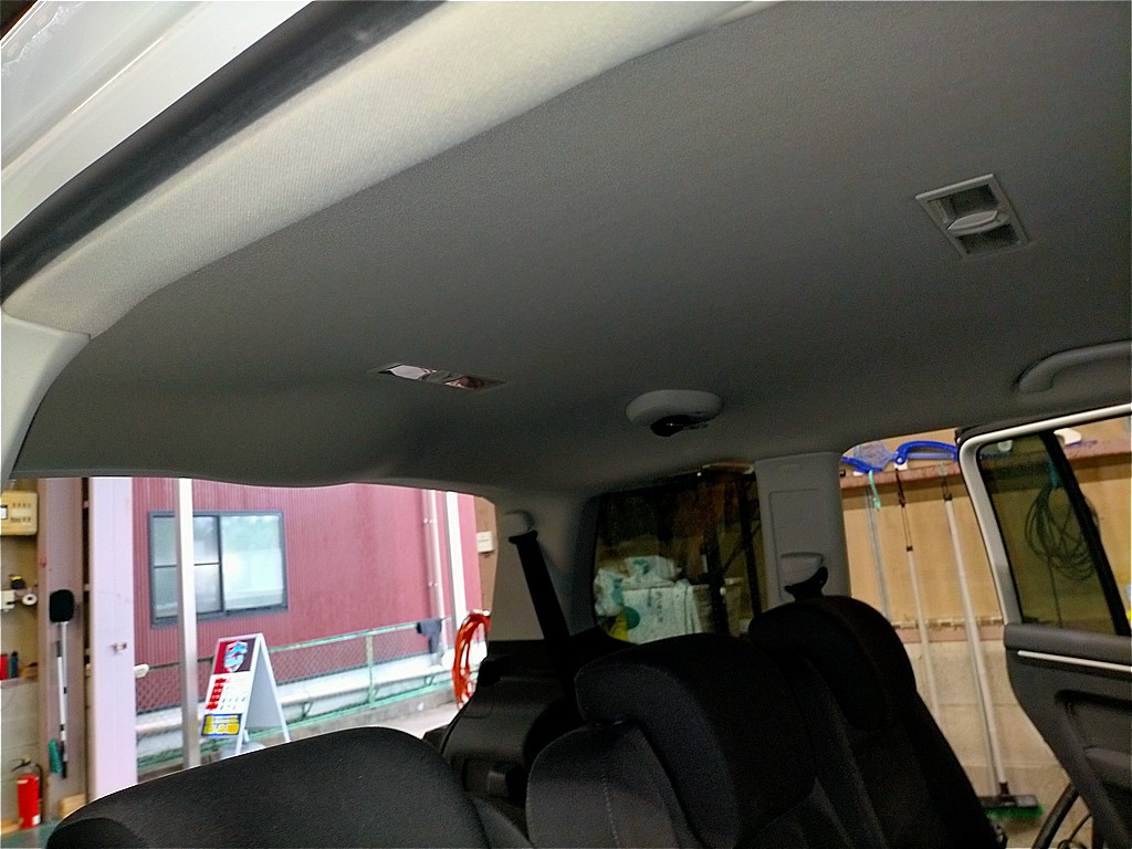 /カテゴリ: フォルクスワーゲン, トゥーラン, 施工事例, 天井張り替え /作成者: KAJIフォルクスワーゲン・トゥーラン 剥がれて垂れた天井の張り替え