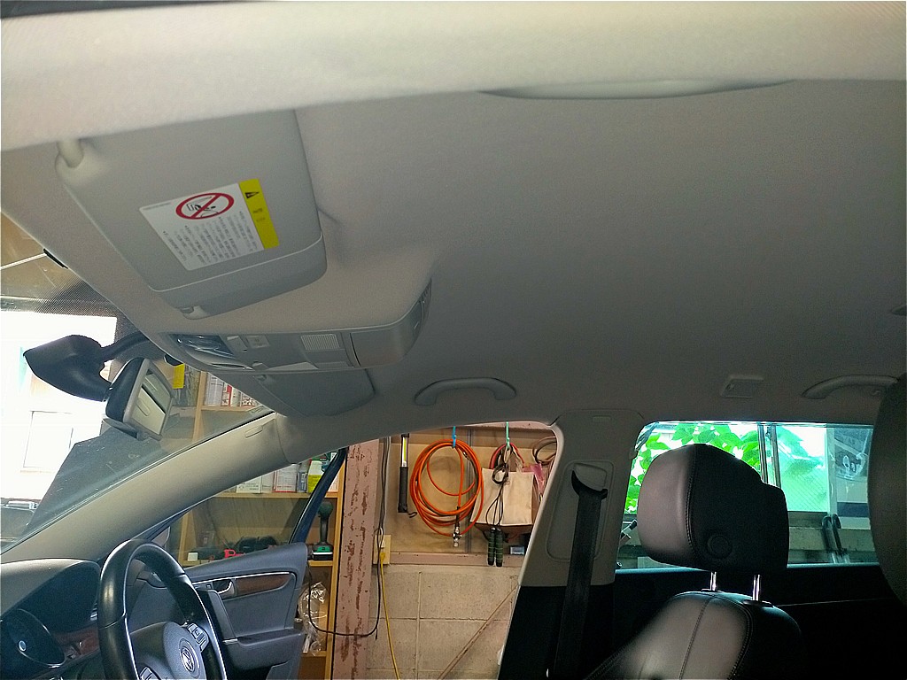/カテゴリ: フォルクスワーゲン, パサート, 施工事例, 天井張り替え /作成者: KAJIフォルクスワーゲン パサート 剥がれて垂れた天井の張り替え