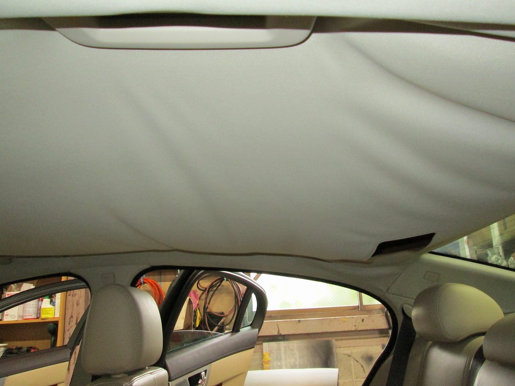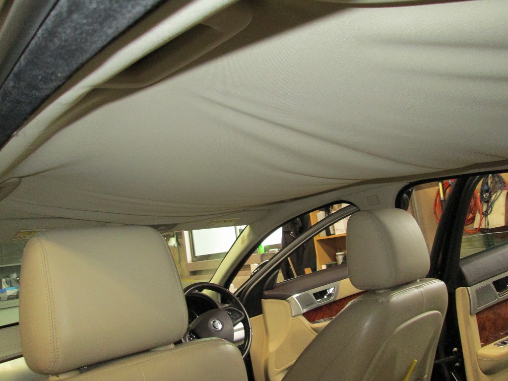 ジャガー・XF 剥がれて垂れた天井の張り替えと防音断熱材の追加|愛知県名古屋市 T様のお車の内装修理・補修
