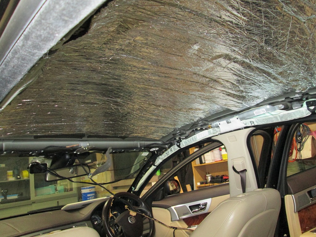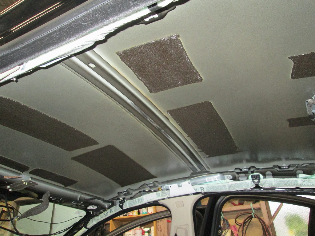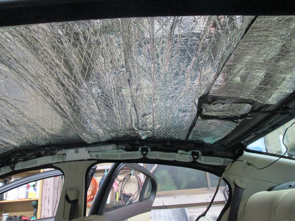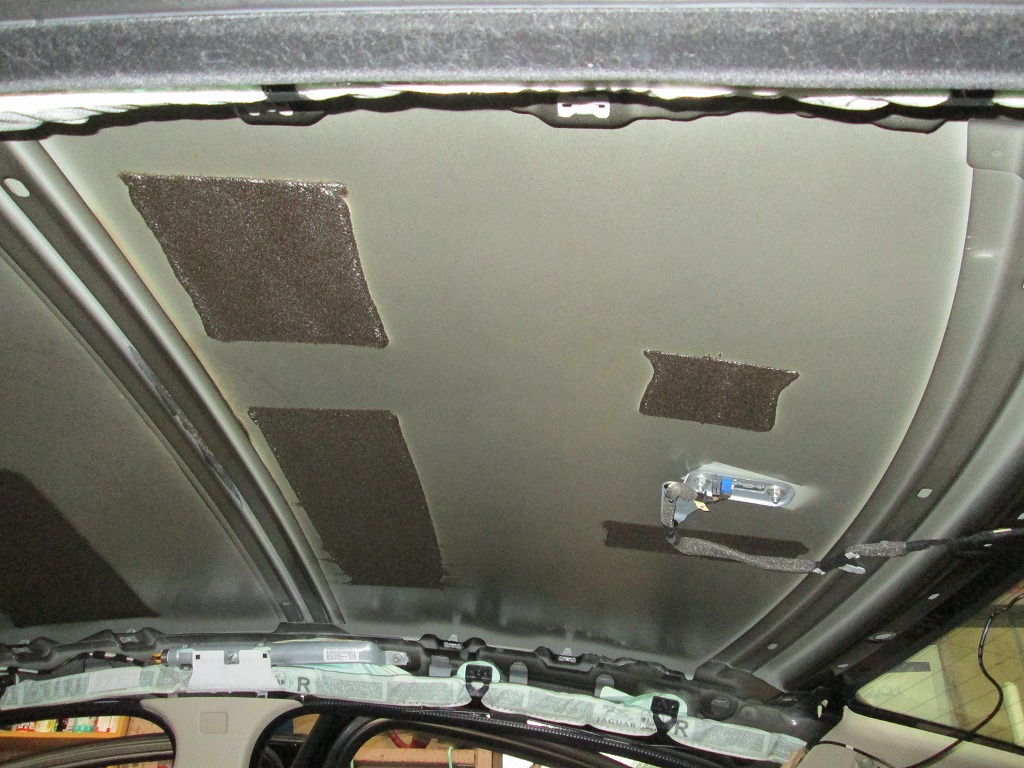 ジャガー・XF 剥がれて垂れた天井の張り替えと防音断熱材の追加