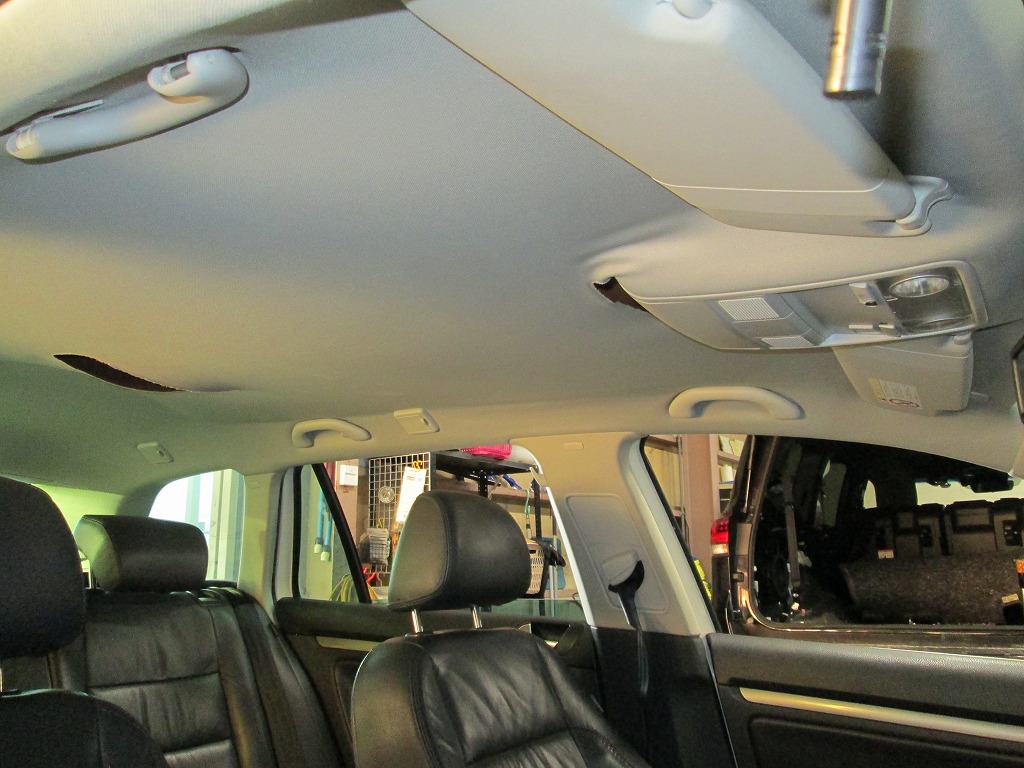 フォルクスワーゲン・ゴルフヴァリアント 剥がれて垂れた天井の張り替えと防音断熱材の追加|愛知県名古屋市 A様のお車の内装修理・補修
