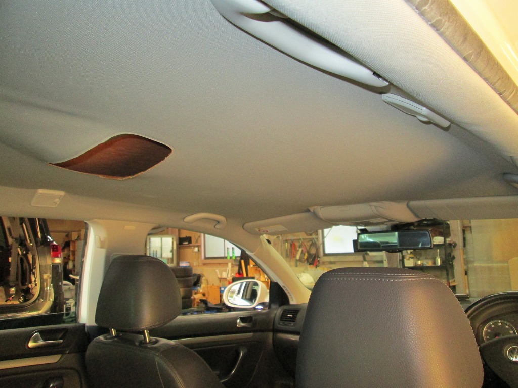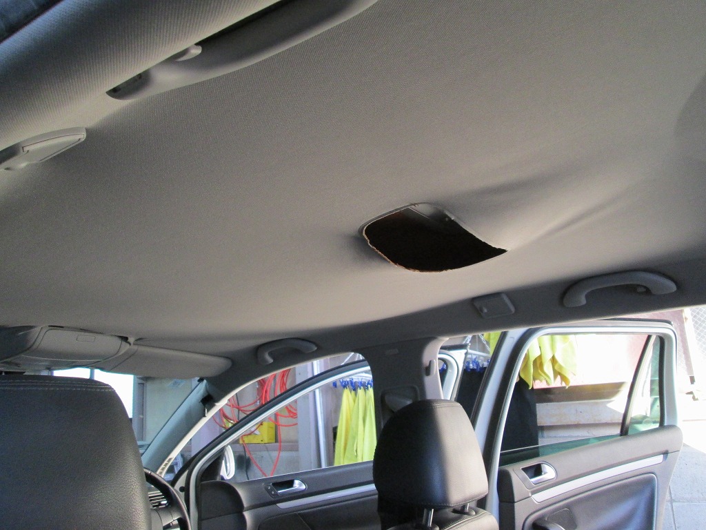 /カテゴリ: フォルクスワーゲン, ゴルフ, 施工事例, 天井張り替え, 断熱の天井張り替え /作成者: KAJIフォルクスワーゲン・ゴルフヴァリアント 剥がれて垂れた天井の張り替えと防音断熱材の追加