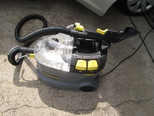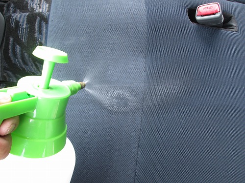 最初に汚れを浮かすため・・・・シート用洗剤を吹き付けます