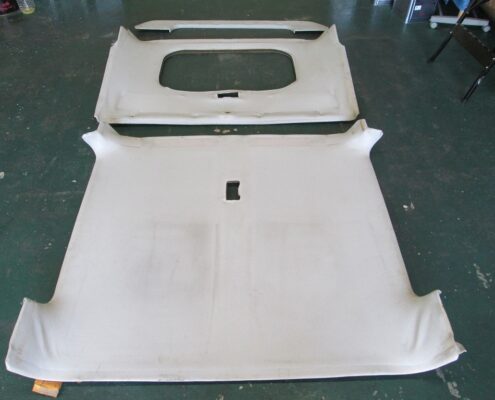 車両から取り外した時と逆の順番に複数の人間で確認し合いながら慎重に天井ライナーの取り付けをします。取り付け後にルームランプなどの点灯確認を中心に点検をして正常であれば完成です。