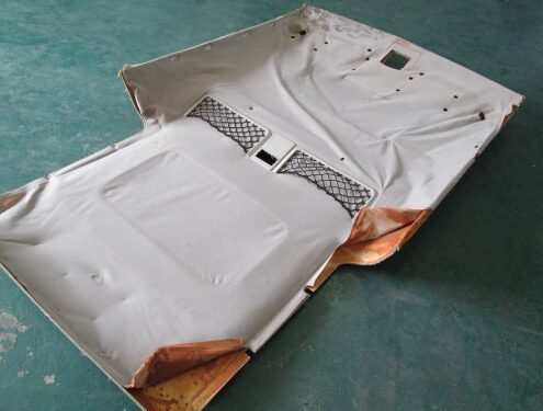車両から取り外した時と逆の順番に複数の人間で確認し合いながら慎重に天井ライナーの取り付けをします。取り付け後にルームランプなどの点灯確認を中心に点検をして正常であれば完成です。