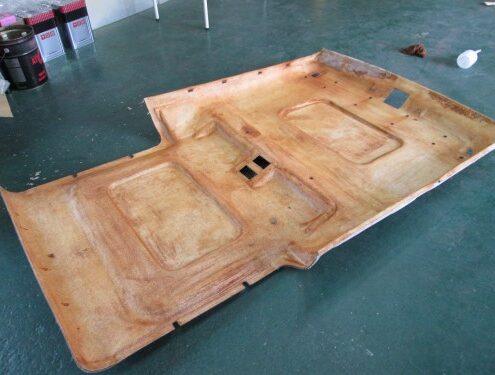 車内の養生をしてから天井を止めている部品などを外して天井のライナーを下に降ろして、車外に取り出します。ガラスを取り外す必要がある場合もあります(車種によって取り外しの方法や時間が違います)