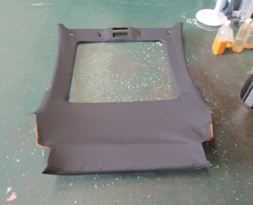 車両から取り外した時と逆の順番に複数の人間で確認し合いながら慎重に天井ライナーの取り付けをします。取り付け後にルームランプなどの点灯確認を中心に点検をして正常であれば完成です。