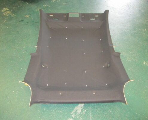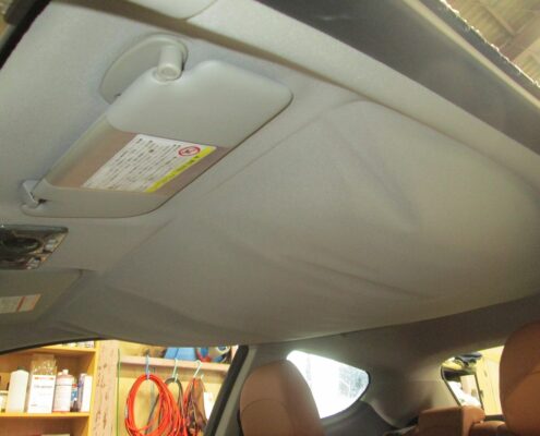 車両から取り外した時と逆の順番に複数の人間で確認し合いながら慎重に天井ライナーの取り付けをします。取り付け後にルームランプなどの点灯確認を中心に点検をして正常であれば完成です。