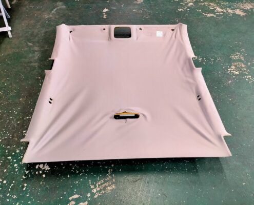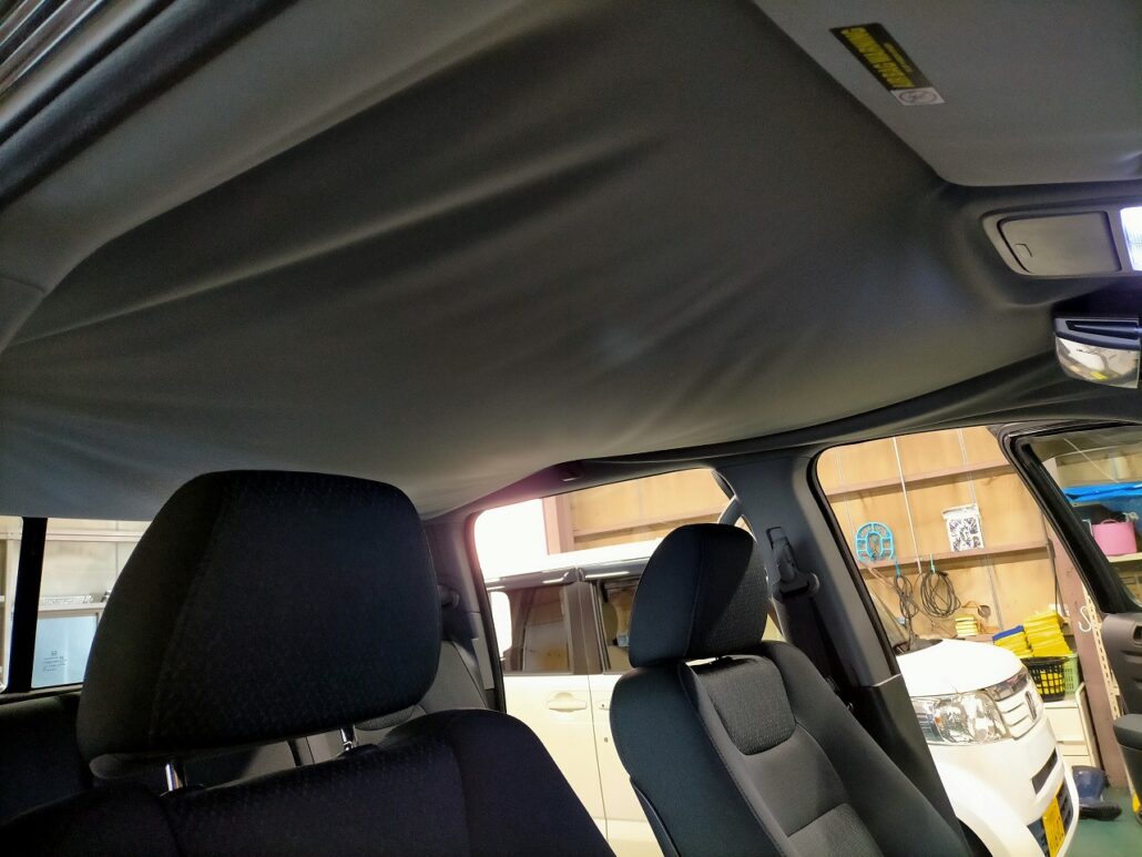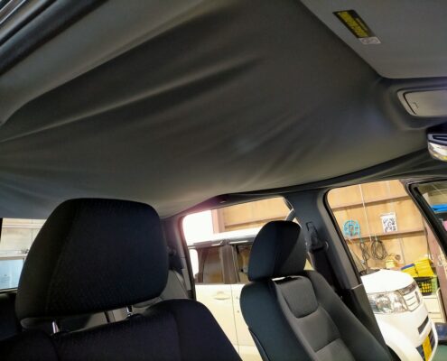 車両から取り外した時と逆の順番に複数の人間で確認し合いながら慎重に天井ライナーの取り付けをします。取り付け後にルームランプなどの点灯確認を中心に点検をして正常であれば完成です。