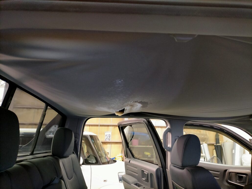 ホンダ リッジラインでも、年式が進むにつれて天井内張りの剥がれや垂れが発生することがあります。